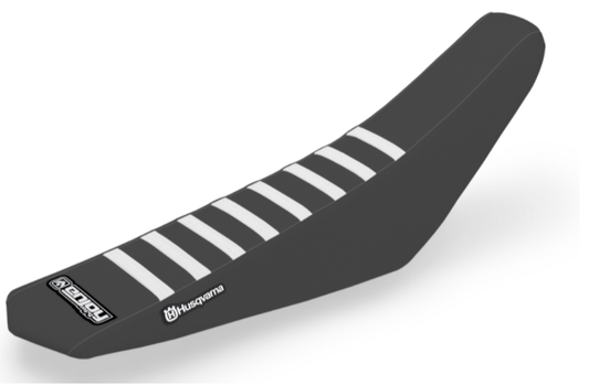 Enjoy Manufacturing Husqvarna Seat Cover TC FC 2019 - 2022 TE FE 2020 – 2023 Ribbed Logo, Black / White / Black