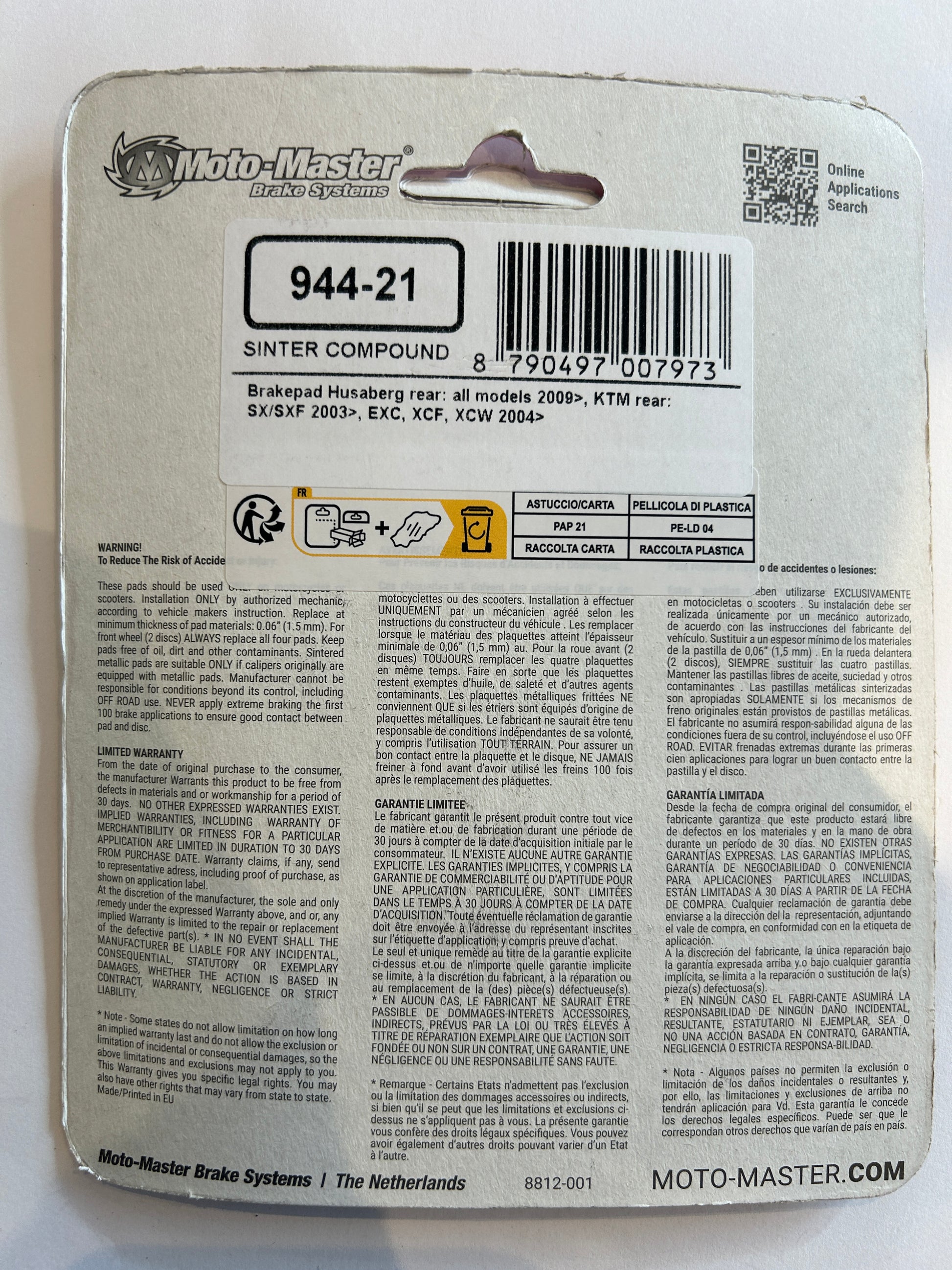 BRAKE PADS SINTERED NITRO, MOTO-MASTER 094421, 39-368