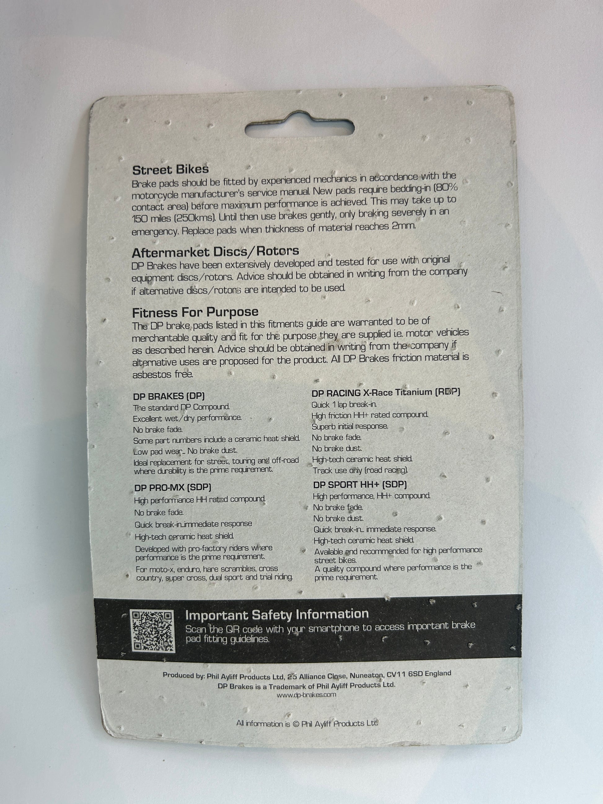 - DP Brakes proven performer, millions sold worldwide, GG friction rated