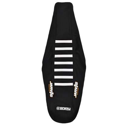 Enjoy Manufacturing Jarvis Edition KTM seat cover SX SXF 2019 - 2022 EXC EXCF 2020 - 2023 Gas Gas MC MCF EC ECF 2021 – 23 Ribbed, Black / White