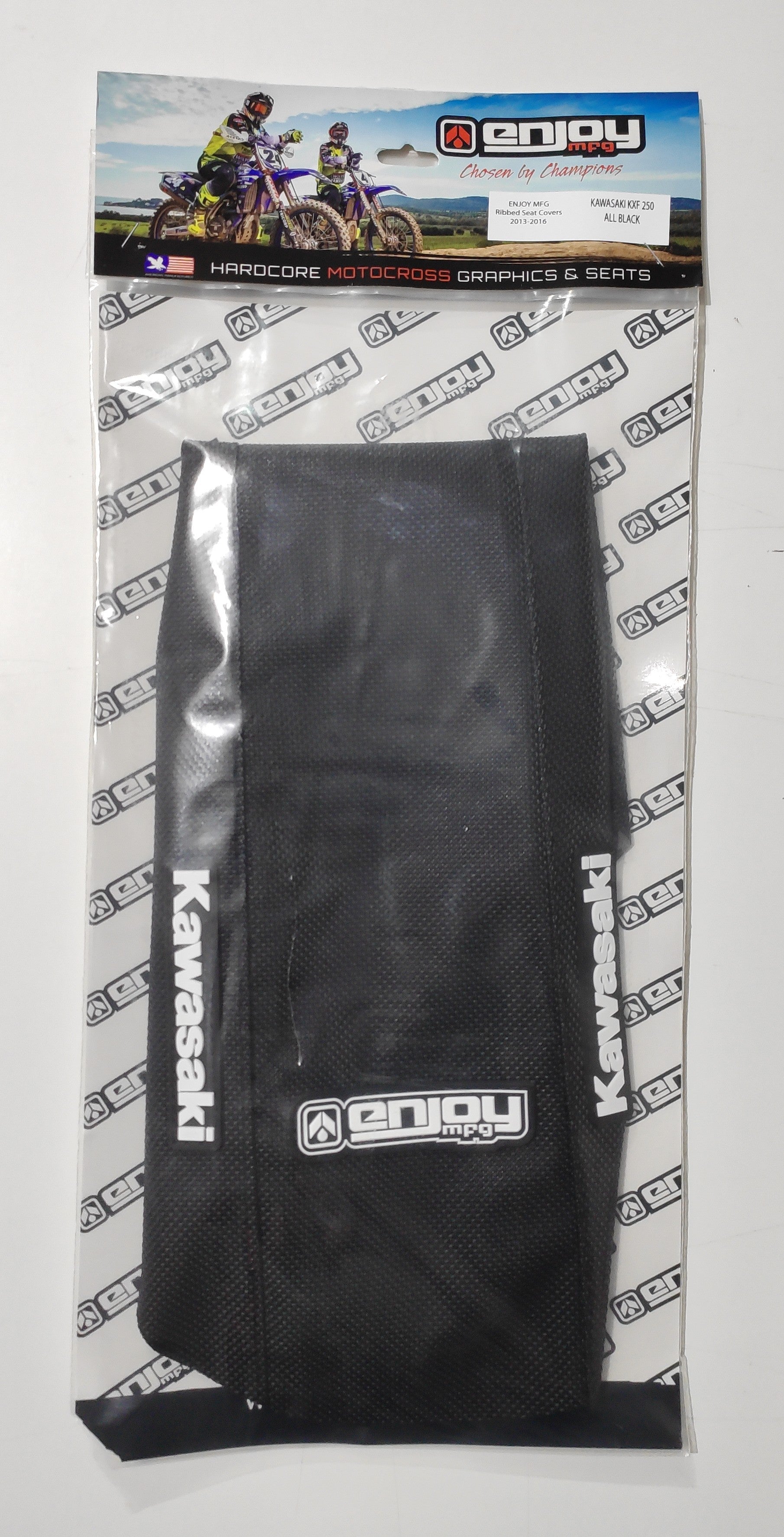 Enjoy MFG is a world leader in Hardcore Motocross Graphics and Seats and produce true works-level graphics and seats that have been developed alongside the most demanding motocross and supercross riders in the world. Team Issue Seat Covers specifications: Handcrafted in the U.S.A Triple stitched seams Steel rule die cut panels for an exact fit Steel rule die cut traction ribs Raised PVC rubber Enjoy MFG Logo Easy installation