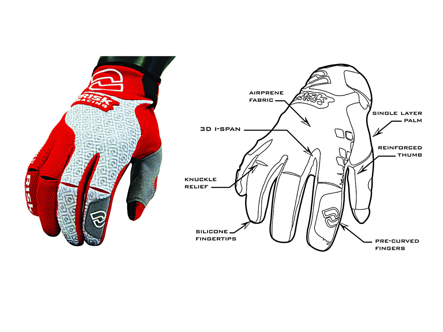 Risk Racing designs and creates the most innovative motocross, dirt bike, & ATV gear & accessories. FEATURES Lightweight, flexible, and reliable; but also reinforced, durable, and aggressive Made of 3D Stretch I-Span, which allows for superior movement and airprene fabric for maximum breathability Silicone Coated Single-Layer Palms and Fingertips for the best possible gripping potential Lycra knuckle reliefs provide the rider with increased flexibility INCLUDED 1 x Pair of Carbide Gloves